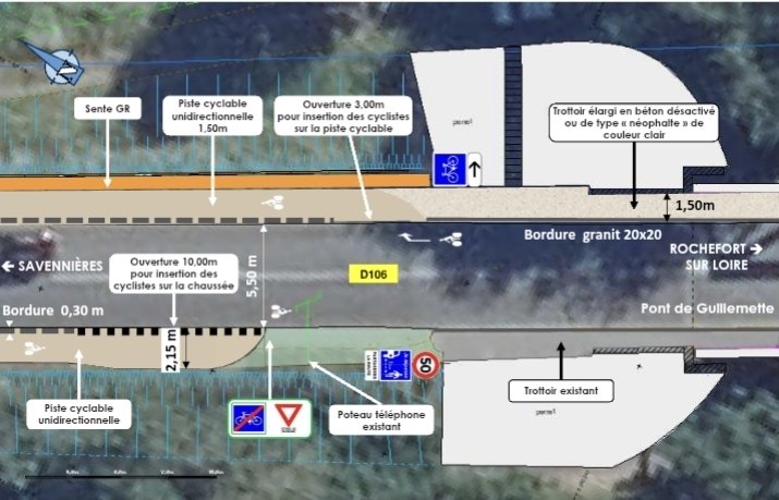 Dans le cadre du développement des mobilités cyclables sur le territoire départemental, la Communauté de communes Loire Layon Aubance et Angers Loire Métropole ont priorisé la réalisation d’une liaison cyclable entre Rochefort-sur-Loire et Savennières le long de la route départementale n°106.