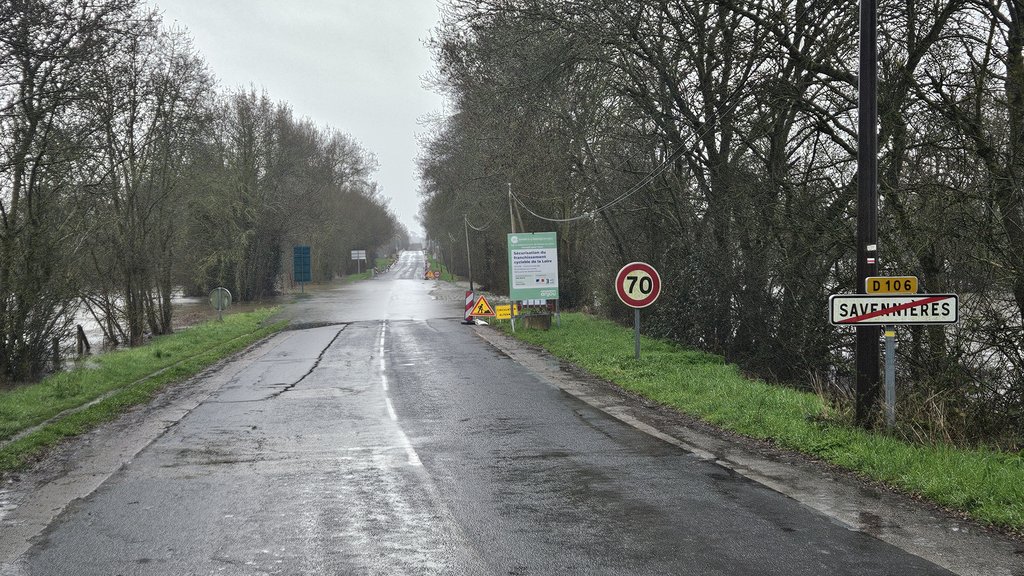 Les routes départementales 106, reliant Savennières, Béhuard et Rochefort-sur-Loire, ainsi que la 111, longeant la ligne SNCF et la rue du canal, sont actuellement inondées. Nous vous prions de ne pas vous engager sur ces axes routiers.
