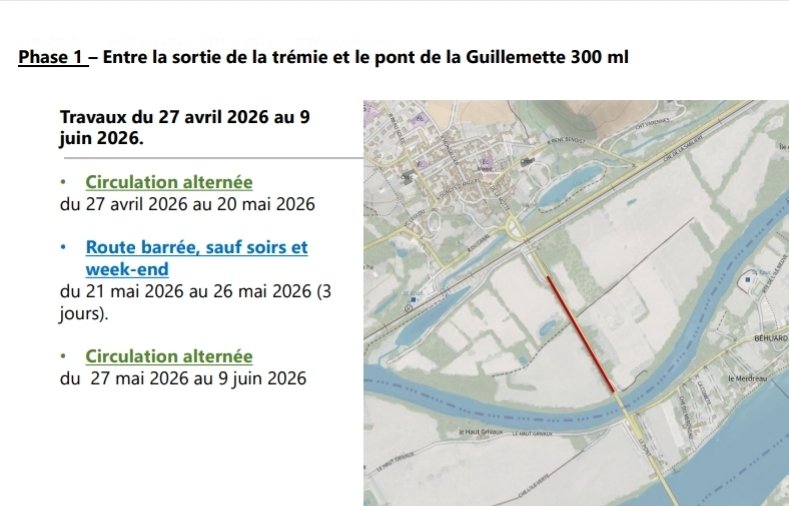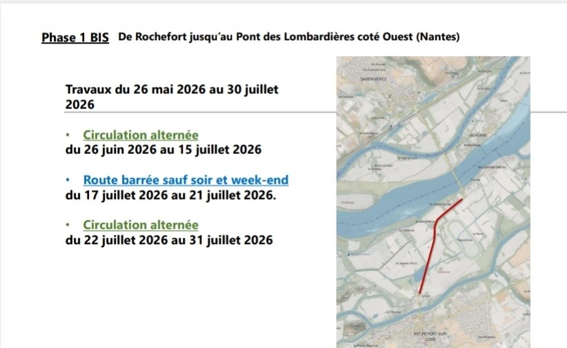 Bon à savoir : D'autres chantiers auront lieu en parallèle sur le secteur, notamment le réaménagement de la Place de la Concorde à Savennières (juin-décembre 2026) et du centre-bourg de Rochefort (à partir de novembre 2026).