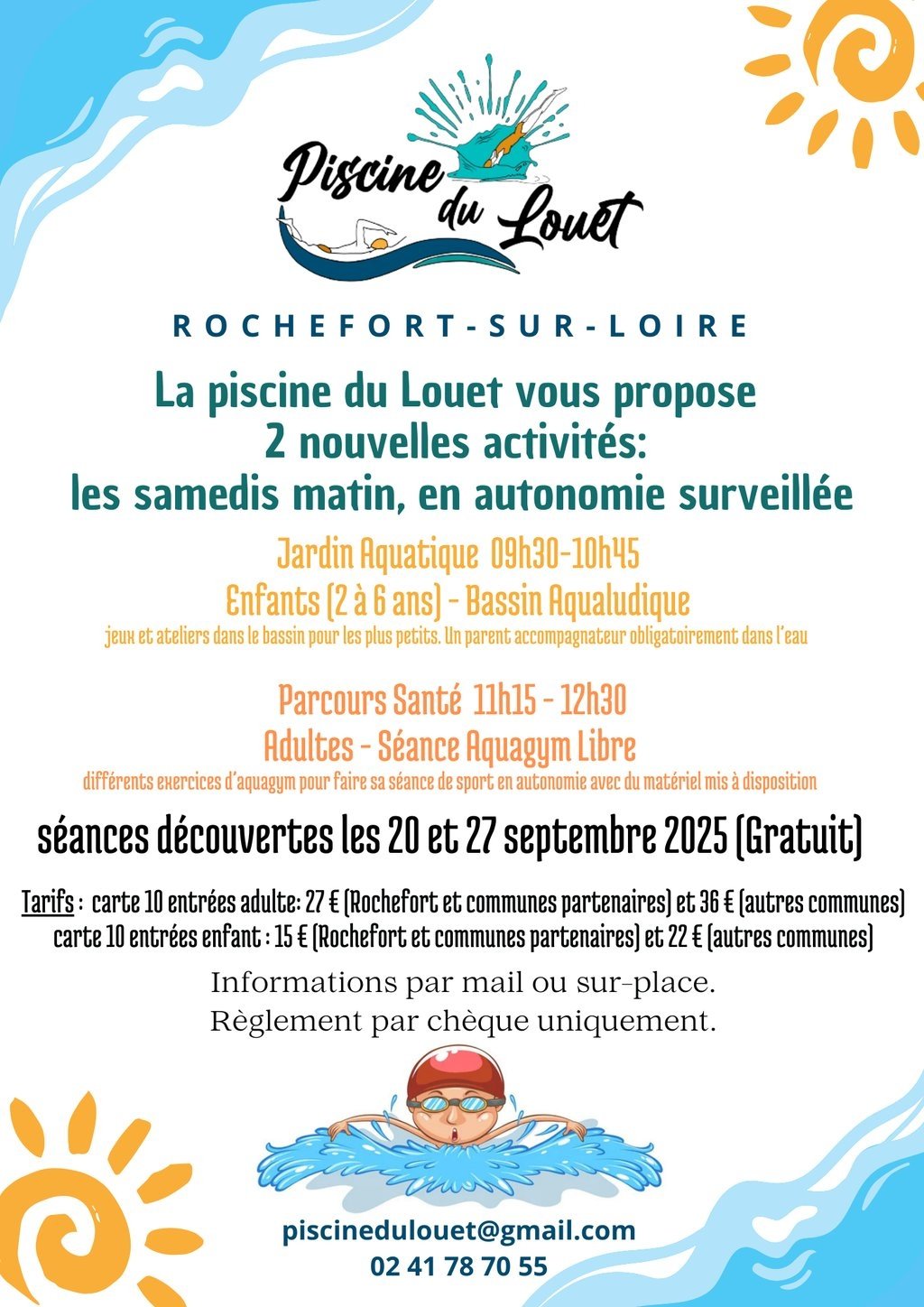 Piscine du Louet les Samedis matin en autonomie surveillée Jardin Aquatique puis Parcours Santé