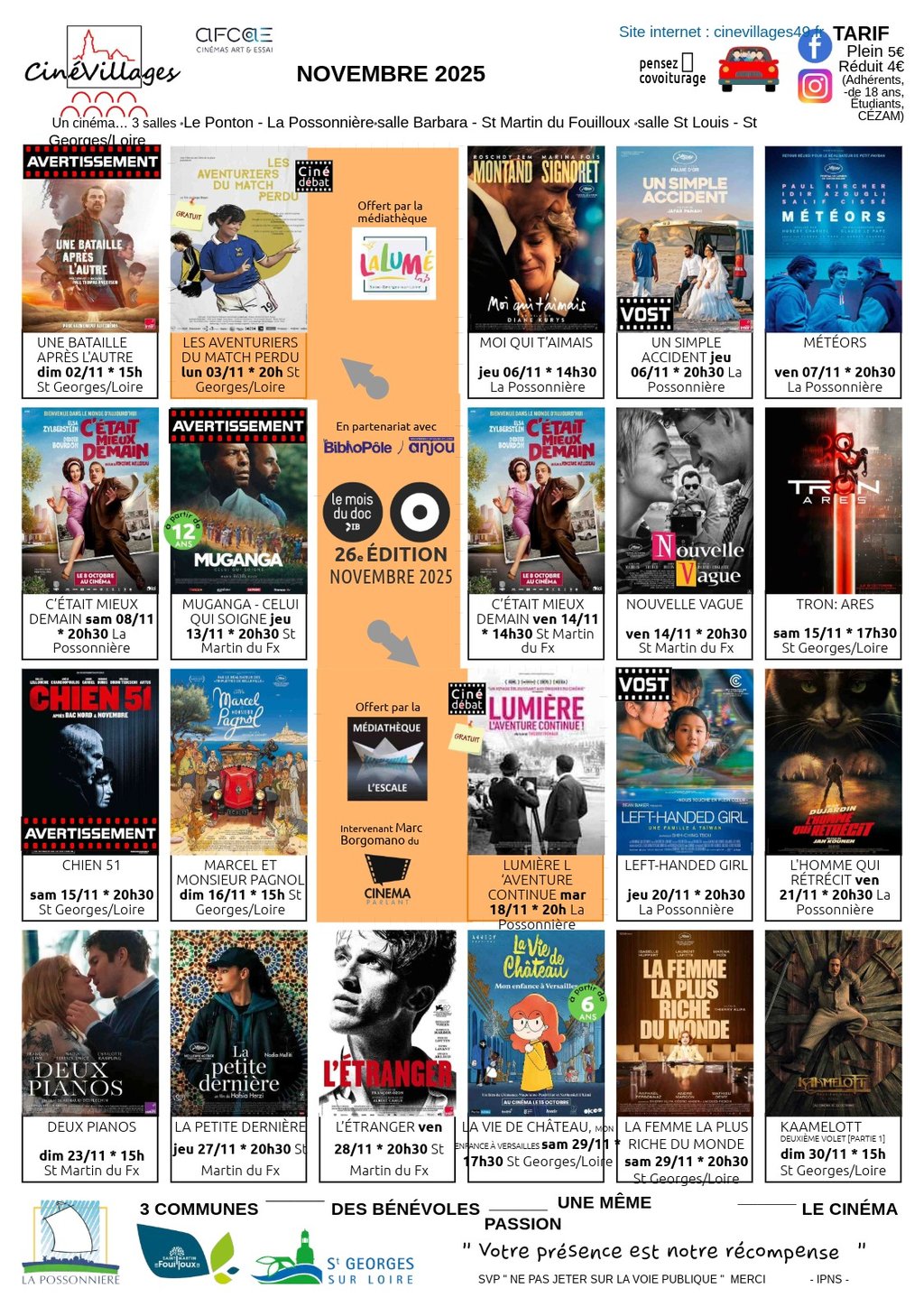 📣 L'équipe de CinéVillages est heureuse de vous présenter le programme du mois de novembre 2025 avec la 26è édition du mois du Doc