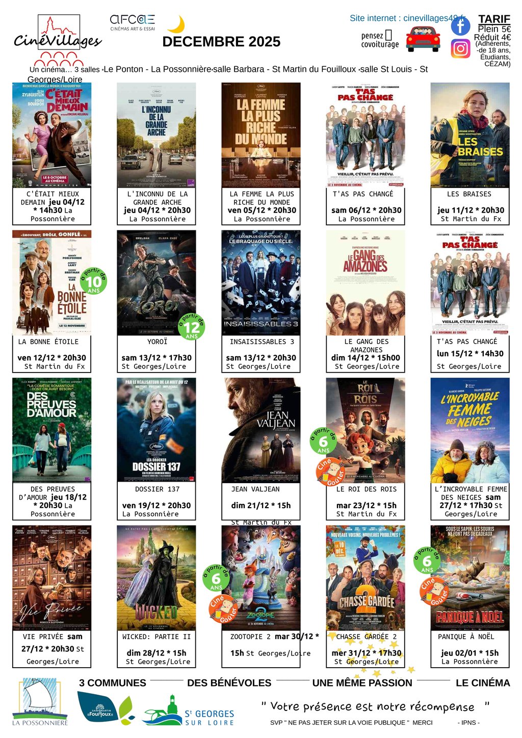 📣 C'est avec plaisir que l'équipe de CinéVillages vous présente le programme du mois décembre 2025