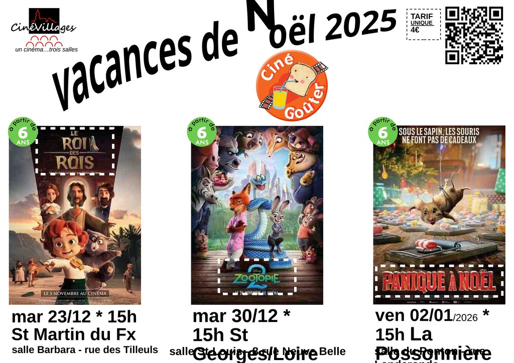 Vacances Noël 2025 ciné Goûter 🍫à Partir de 6 ans tarif unique 4 €