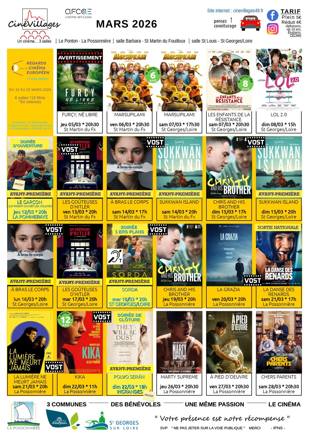 📣 Toutes les équipes de CinéVillages vous présentent le Flyer du mois de mars 2026
