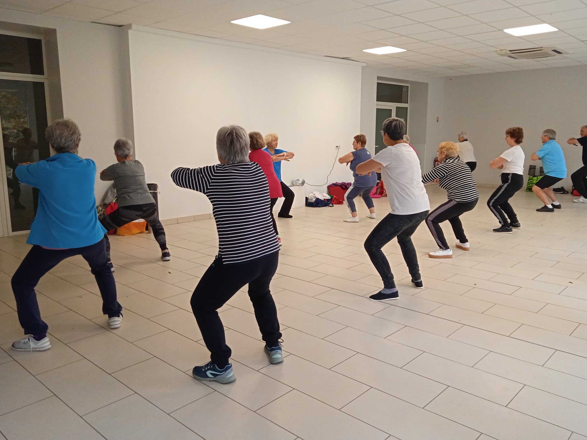 Nous appliquons cet adage tous les jeudis matin à la Sellerie avec notre coach Thérèse. Celle-ci est très soucieuse de notre forme et nous prépare des cours sur mesure. Elle surveille attentivement nos mouvements et les corrige si besoin.